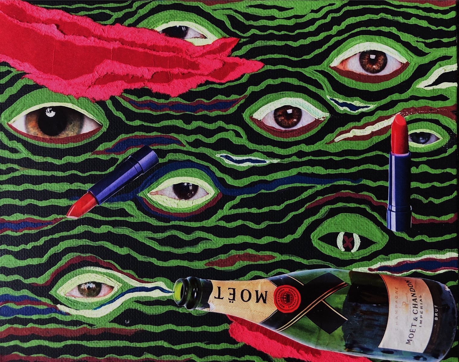 It has taught me patience because when working with unique, physical materials that take time and dedication to gather, you have to think ahead more-so than when working digitally. You cannot “Command-Z” or “Edit-Undo” pasting a clipping from a vintage magazine on the wrong area, cutting a piece in the wrong dimensions, or painting a brushstroke over the incorrect part of an almost finished piece. The process of this medium has taught me to be meticulous, and above all, it has conditioned me to see the bigger picture in my head before I even begin to place it together.