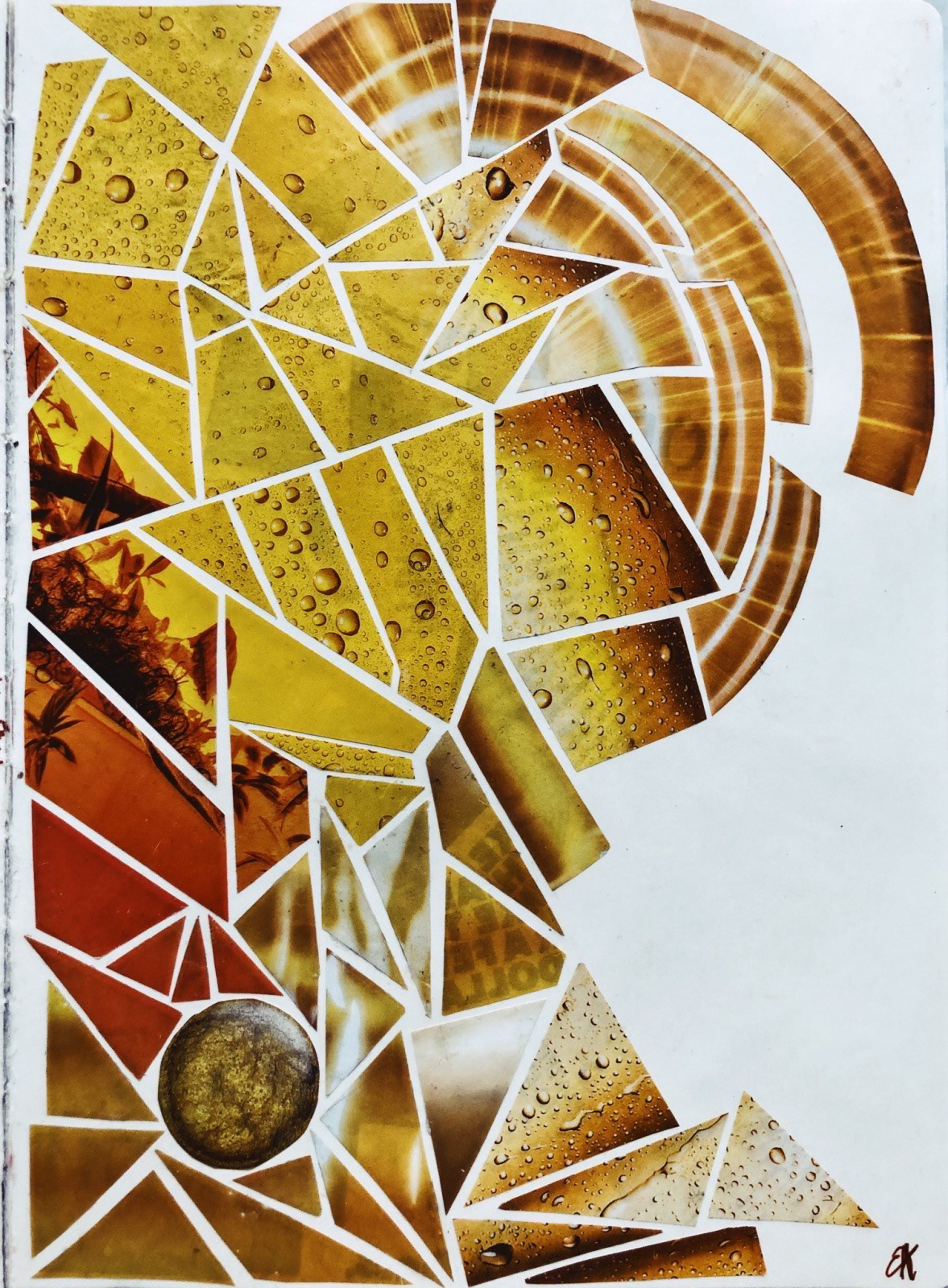 Each of my collages are made up of a multitude of pieces, that are all carefully collected, thought through, and positioned until I feel I have enough to make a complete piece. I have always been very interested in the “pieces of a whole”; the idea that everything in this world and life is made up of infinite different puzzle pieces that come together to make a complete picture or definition.
